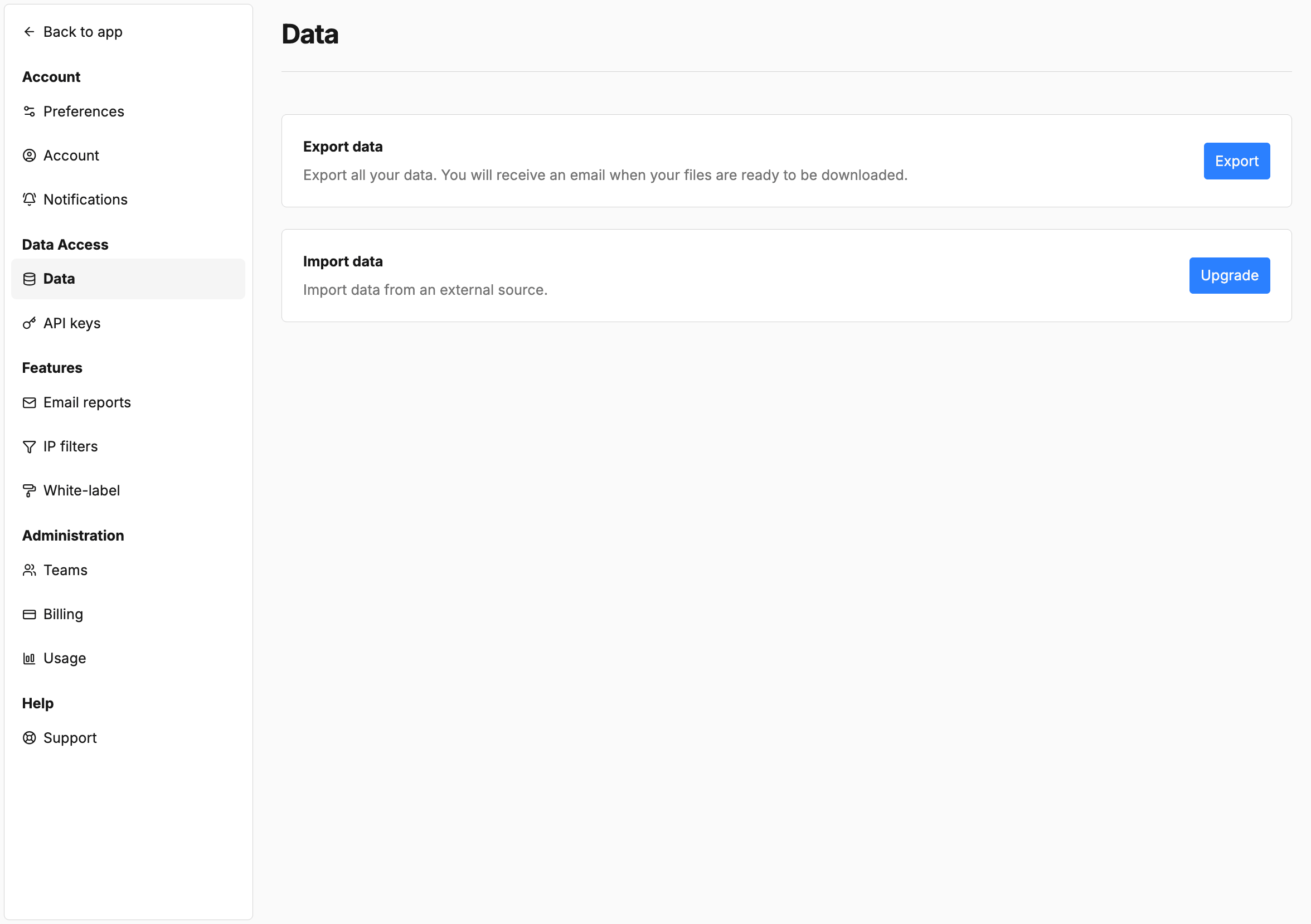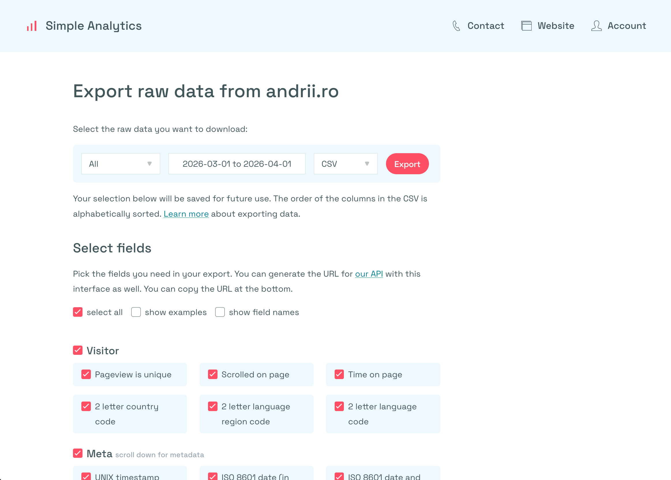 - Log in to your Simple Analytics dashboard and go to their Export data page